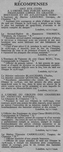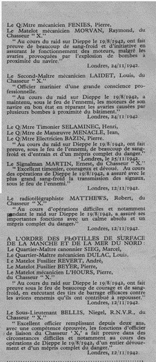 Medal Citations for the Dieppe Raid from the FNFL Bulletin January 1943