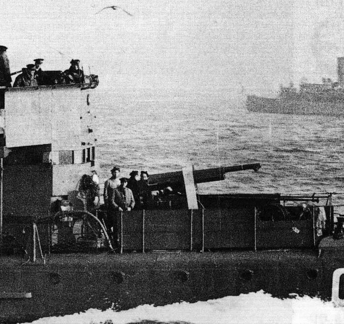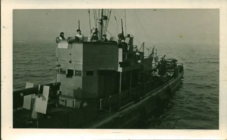 Both sides between ships dinghy and pom pom Photo Guonvarch collection